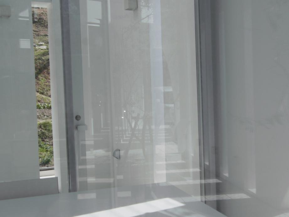 ガラス越しのエントランス。
